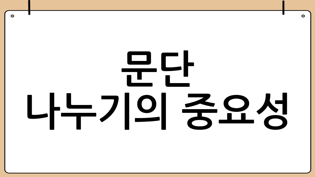 문단을 나누는 데에는 분명한 기준이 있습니다. 이 기준을 명확히 알고 글을 쓴다면, 정보 전달력이 향상되고 독자들이 쉽게 이해할 수 있는 글이 됩니다.